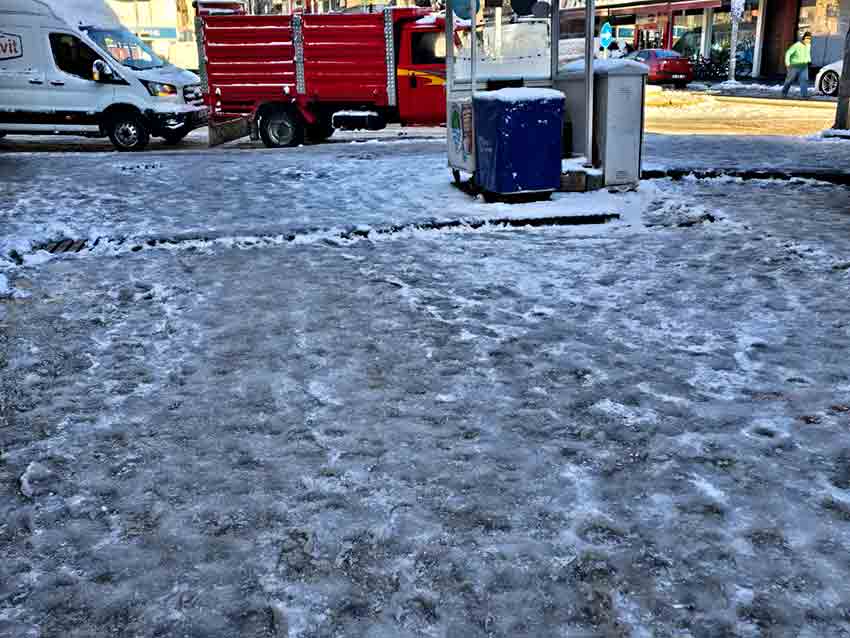 Kent merkezindeki eğimli yollar başta olmak üzere ana ulaşım güzergâhlarında buzlanma etkisini artırdı. Bazı sürücüler araçlarını park etmek zorunda kalırken, yayalar düşme tehlikesiyle karşı karşıya kaldı.