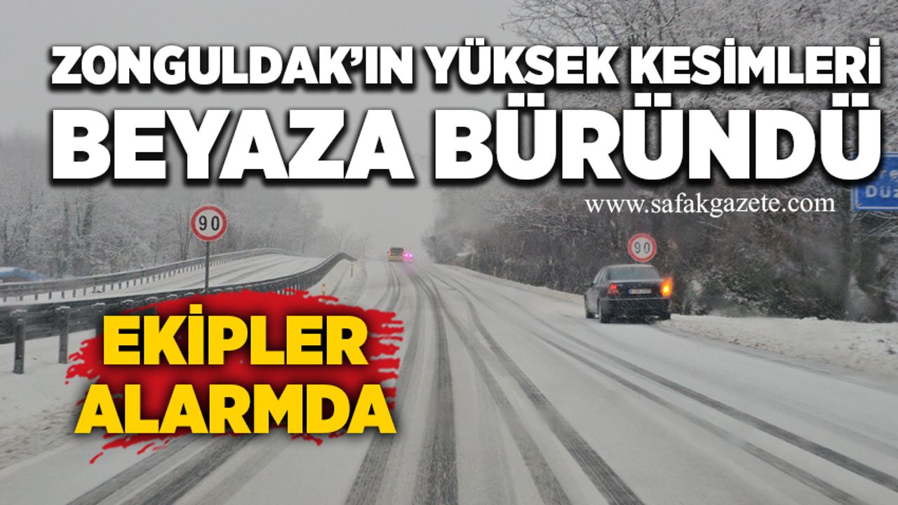 Zonguldak'ın yüksek kesimlerinde sabah saatlerinden itibaren devam eden kar yağışı etkisini sürdürüyor. Ereğli istikametinde ise karayolları ekipleri karla mücadele çalışmalarını aralıksız sürdürüyor.