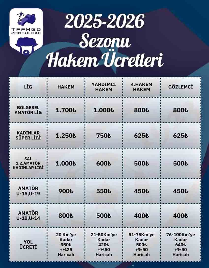 Amatör ligler dahil olmak üzere tüm hakem ve gözlemcileri kapsayan bu zam, özellikle Zonguldaklı hakem ve gözlemciler tarafından memnuniyetle karşılandı. Yapılan artış, hakemlik ve gözlemcilik faaliyetlerinde motivasyonu artırmayı hedefliyor.