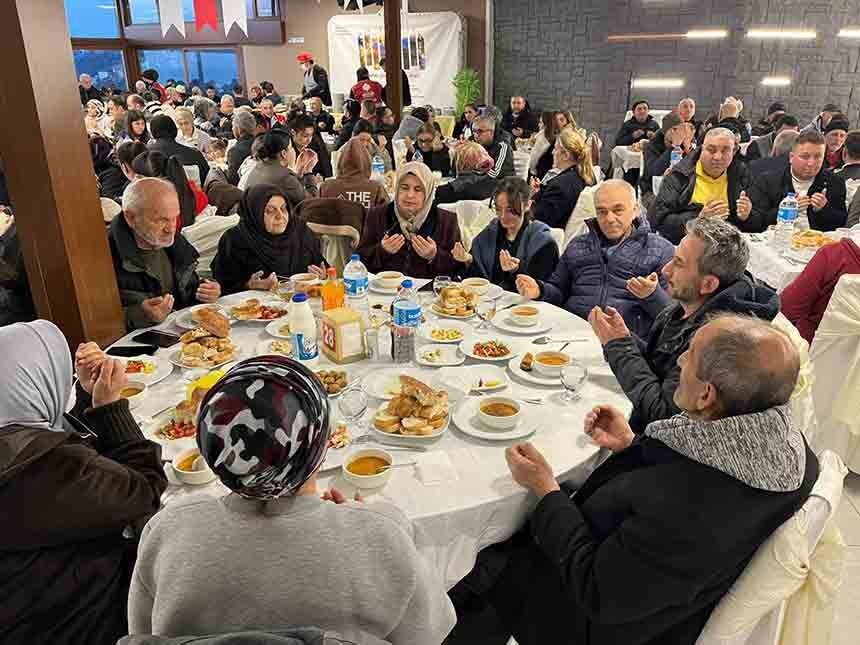 Zonguldak Beyaz Saray Düğün Salonu’nda gerçekleştirilen programda günlük yaklaşık 400 kişi iftar yaptı. Ramazan ayının 27’nci gününe kadar toplamda 10 bin 800 kişi aynı sofrada ağırlandı. İftar öncesinde Kur’an-ı Kerim okunurken, ilahi ve dualar eşliğinde oruçlar açıldı.
