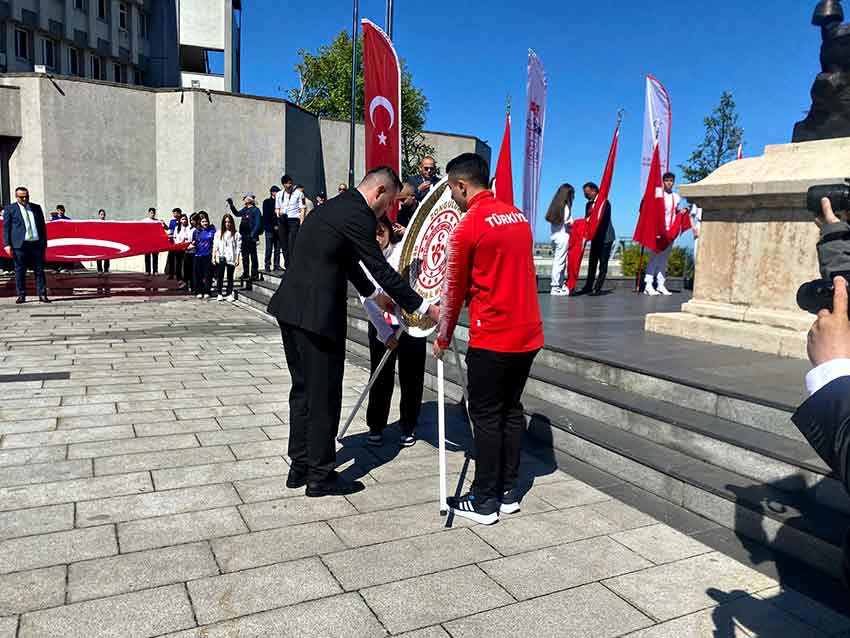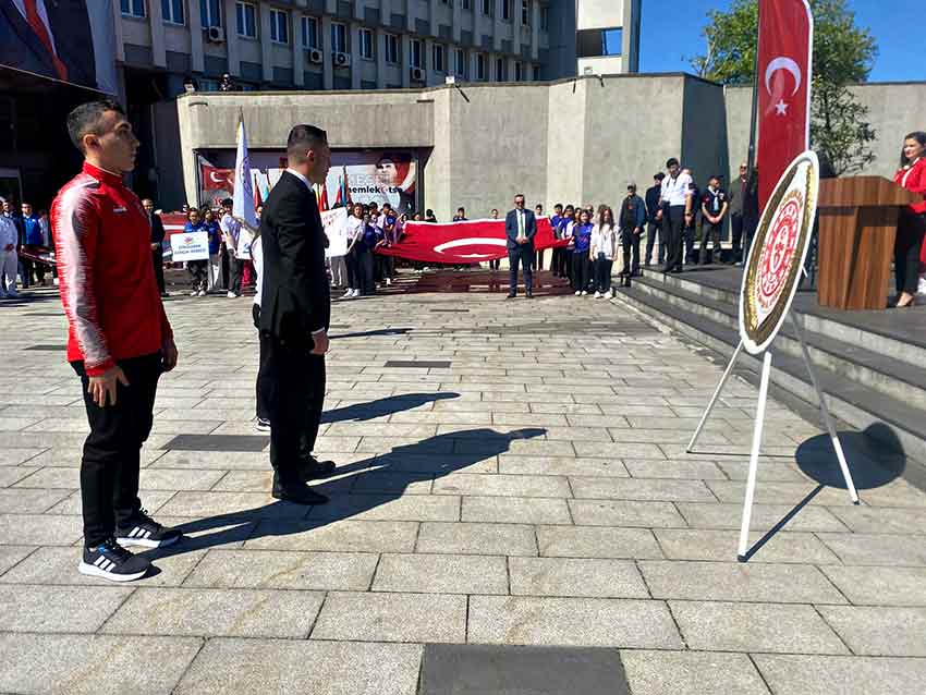 Gençlik ve Spor İl Müdürü Halil Hacı, kurum adına çelengi Atatürk Anıtı’na sunarken, tören saygı duruşu ve İstiklal Marşı’nın okunmasıyla devam etti. Tören, resmi bölümün tamamlanmasıyla sona erdi.