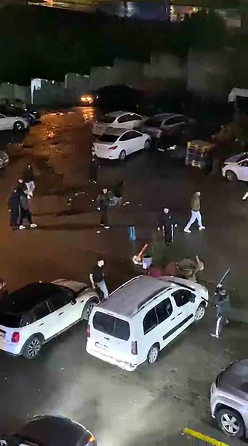 Yaklaşık 20 kişinin karıştığı olayda taraflar tekme ve yumruklarla birbirine saldırdı. Çevredeki vatandaşlar korku dolu anlar yaşarken, yaşanan arbede amatör kameraya yansıdı.
