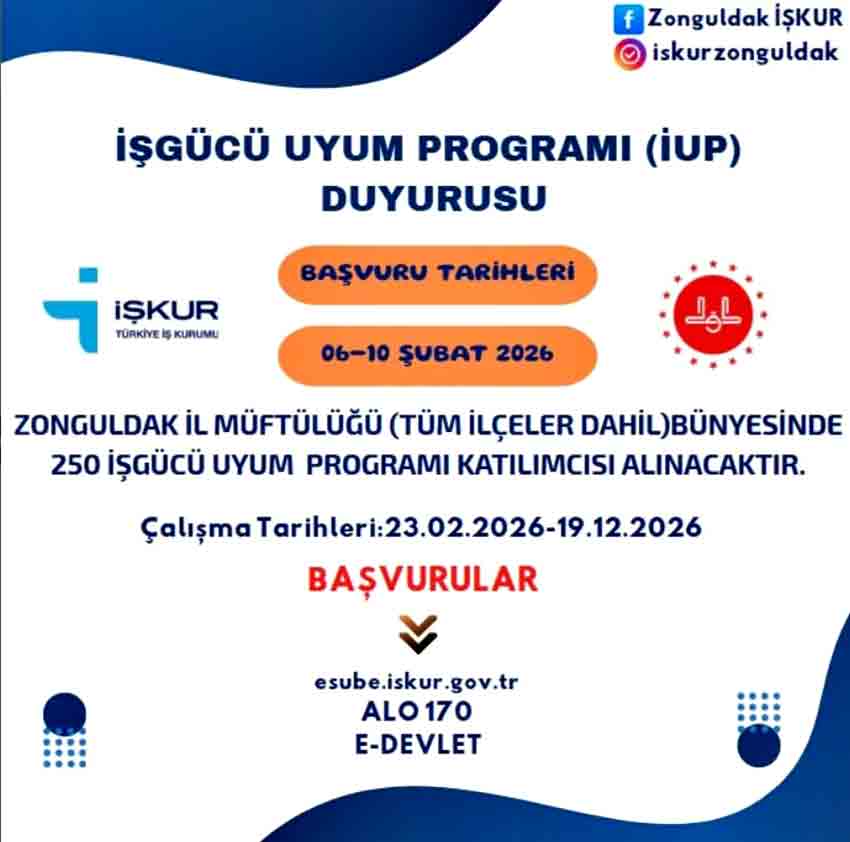 İşgücü Uyum Programı (İUP) kapsamında hayata geçirilen uygulama ile Zonguldak İl Müftülüğü bünyesinde, merkez ve ilçeler dâhil olmak üzere toplam 250 katılımcı görevlendirilecek.