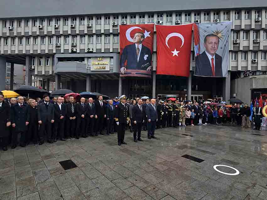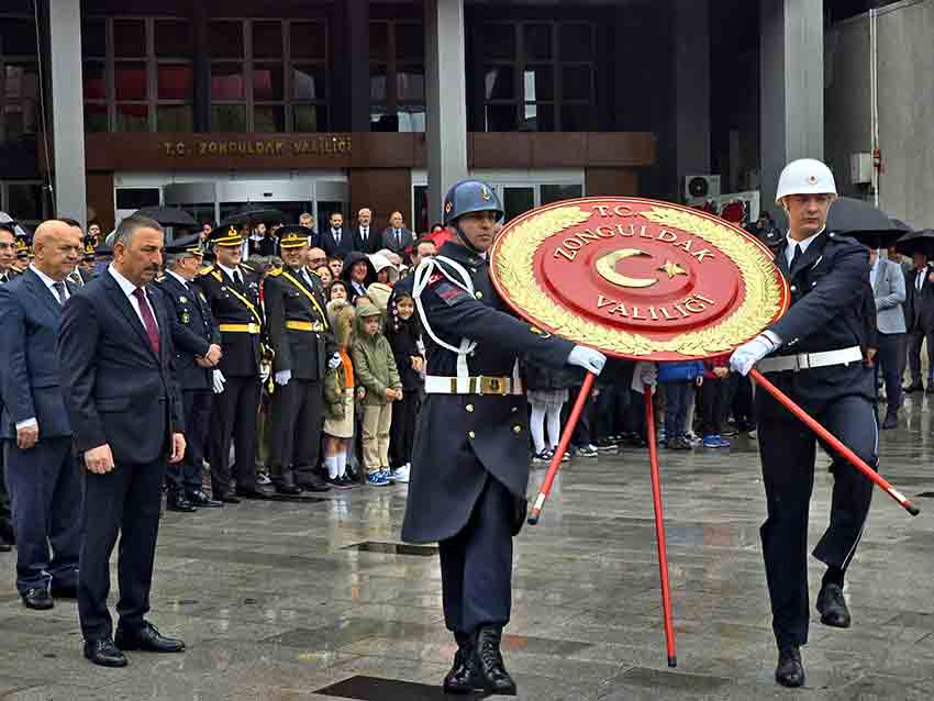 Zonguldak Valiliği önünde düzenlenen törende, Zonguldak Valiliği, Garnizon Komutanlığı ve Zonguldak Belediyesi adına çelenkler Atatürk Anıtı’na sunuldu.