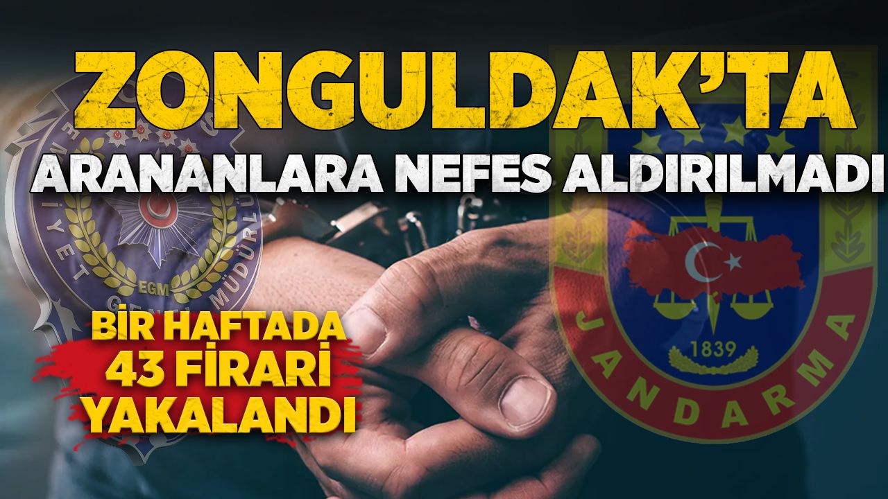 Zonguldak’ta 29 Aralık 2025 – 4 Ocak 2026 tarihleri arasında İl Emniyet Müdürlüğü ve İl Jandarma Komutanlığı ekiplerince yürütülen çalışmalarda aranan şahıslara yönelik önemli bir başarı sağlandı. Yapılan denetim ve operasyonlarda, toplam 43 aranan şahıs yakalandı.