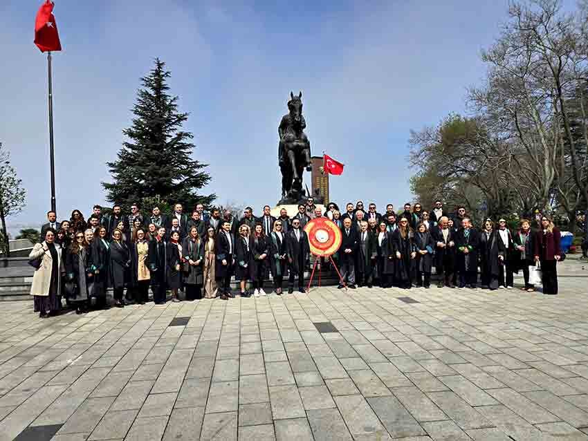 Zonguldak Baro Başkanı Türker Kapkaç, Atatürk Anıtı’na çelenk bırakmasının ardından saygı duruşu yapıldı ve İstiklal Marşı okundu.