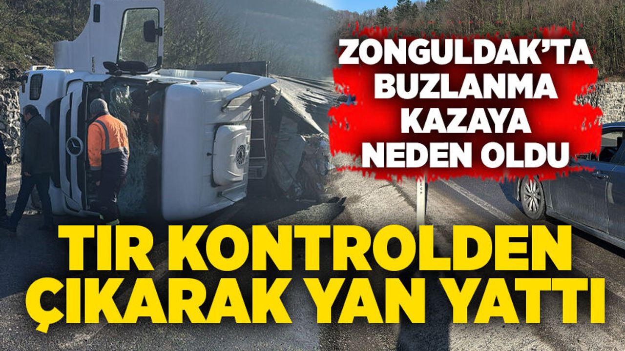Zonguldak ana arterinde sabah saatlerinde etkili olan buzlanma nedeniyle bir tır kontrolden çıkarak yan yattı.