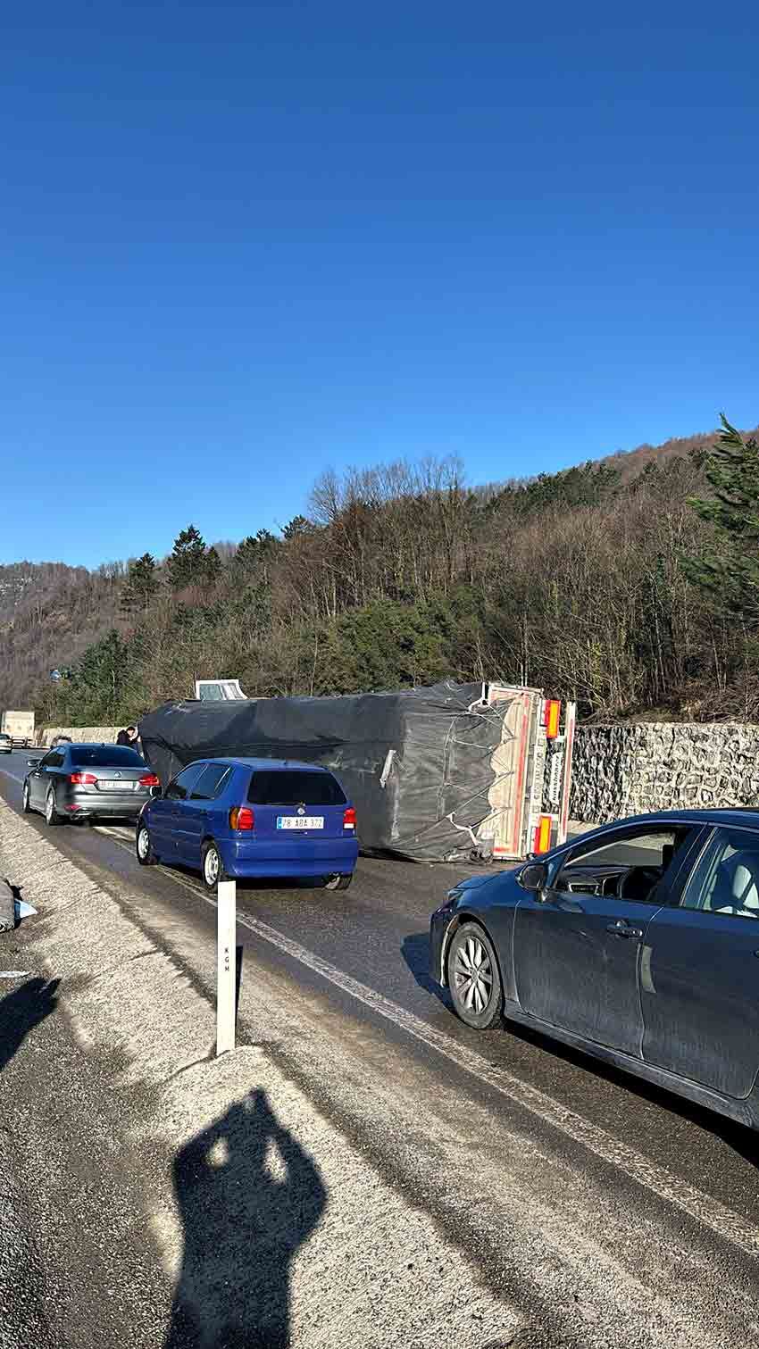 Zonguldak ana yolunda sabah erken saatlerde meydana gelen buzlanma nedeniyle bir tır kazası yaşandı. Ankara istikametinden Zonguldak istikametine seyir halinde olan 78 AAZ 467 plakalı tır, yolun buzlu olması nedeniyle sürücüsünün direksiyon hakimiyetini kaybetmesi sonucu yan yattı. Kazanın ardından olay yerine ekipler sevk edilirken, kazada can kaybı ya da yaralanma yaşanmadığı öğrenildi