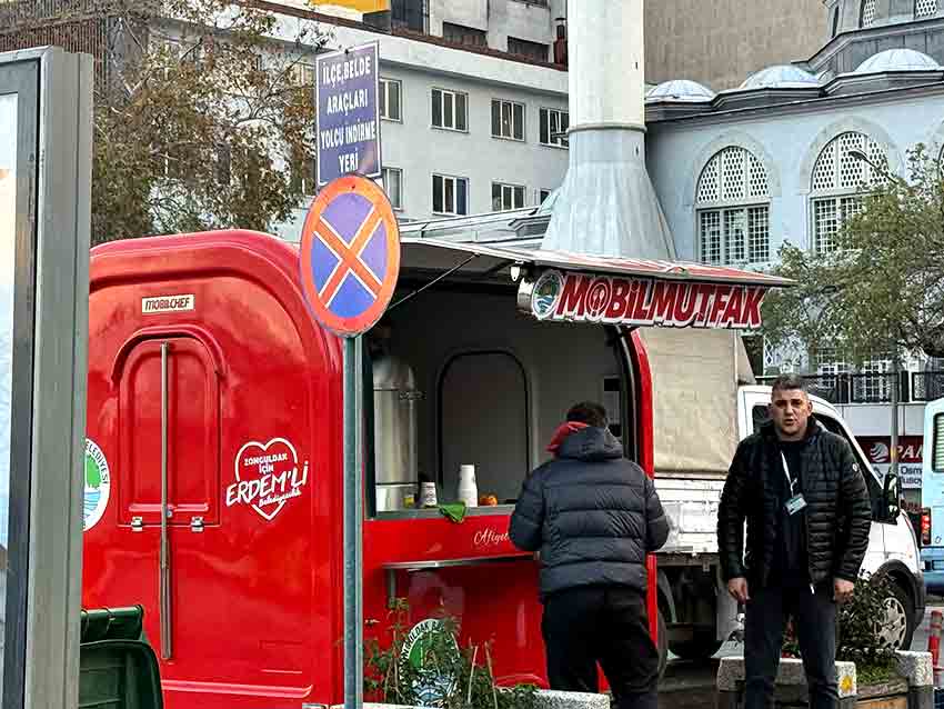 Zonguldak Belediye Başkanı Tahsin Erdem tarafından Kent merkezinde kurulan mobil mutfak aracında sabah 7 ile 9 saatleri arasında ücretsiz dağıtılan sıcak çorba vatandaşlar tarafından yoğun ilgi gördü. Sabah soğuk havada vatandaşlara ikram edilen ücretsiz çorba vatandaşların içini ısıttı. Ücretsiz olarak dağıtılan çorba kısa sürede vatandaşlar tarafından tüketildi. Ücretsiz çorba ikramından memnun olan vatandaşlar Tahsin Erdem'e teşekkür etti.