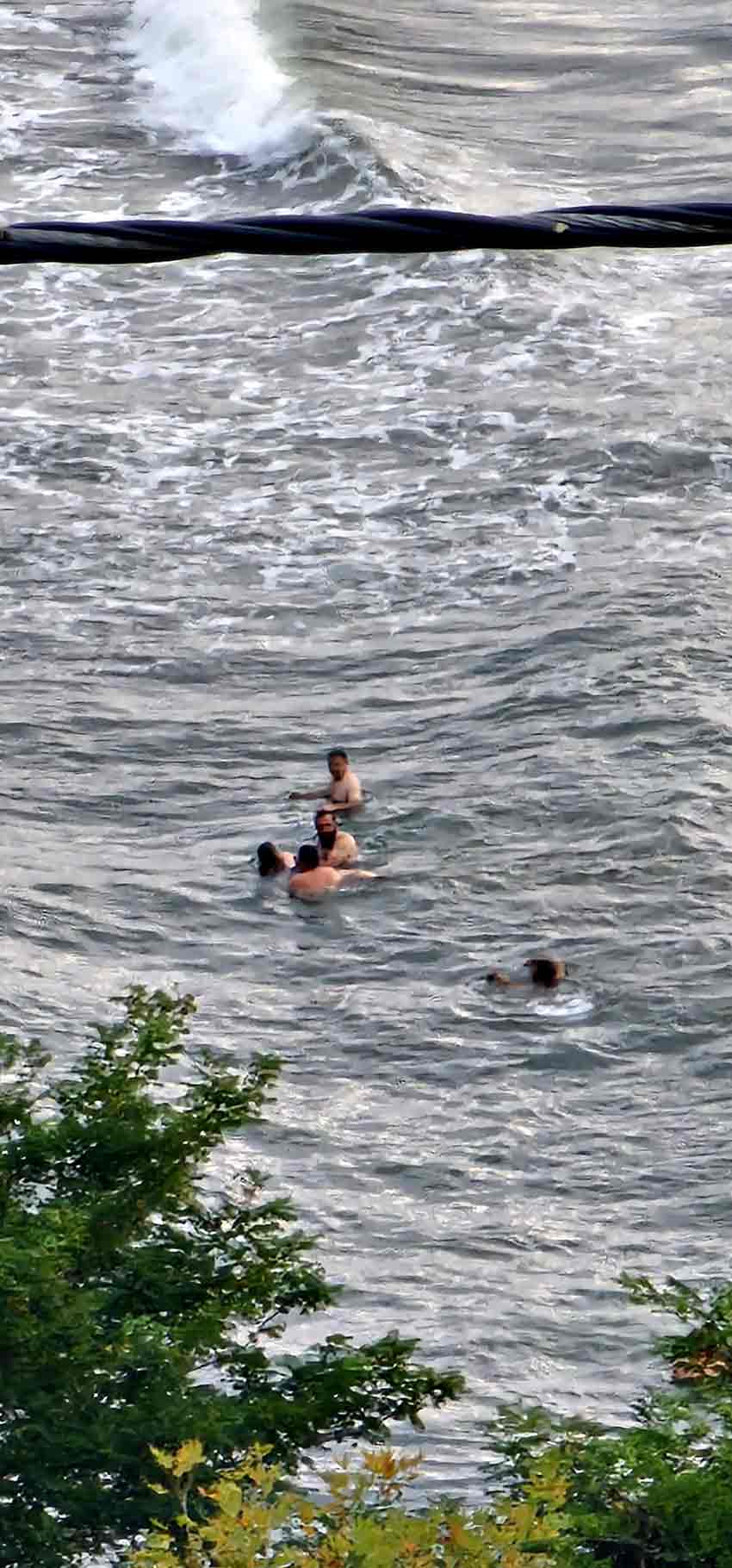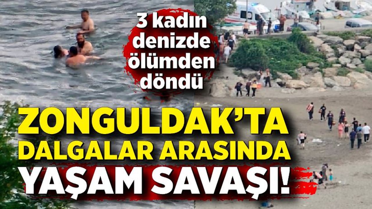 Zonguldak'ın Alaplı ilçesi Cennet Koyu sahilinde denizde boğulma tehlikesi geçiren 3 kadın, can simidi ve oluşturulan insan zinciriyle kurtarıldı. O anlar cep telefonuyla kaydedildi.