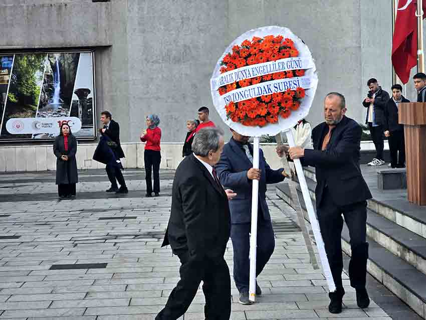 3 Aralık Dünya Engelliler Günü kapsamında Zonguldak'ta kutlama etkinlikleri düzenlendi. Valilik önünde düzenlenen etkinliğinde törene Vali yardımcısı Fatih Baysal, Zonguldak Belediye Başkanı Tahsin Erdem, siyasi partibe sivil toplum kuruluşları temsilcileri, okul müdürleri , engelli Dernek yöneticileri ve engelli bireyler katıldı.