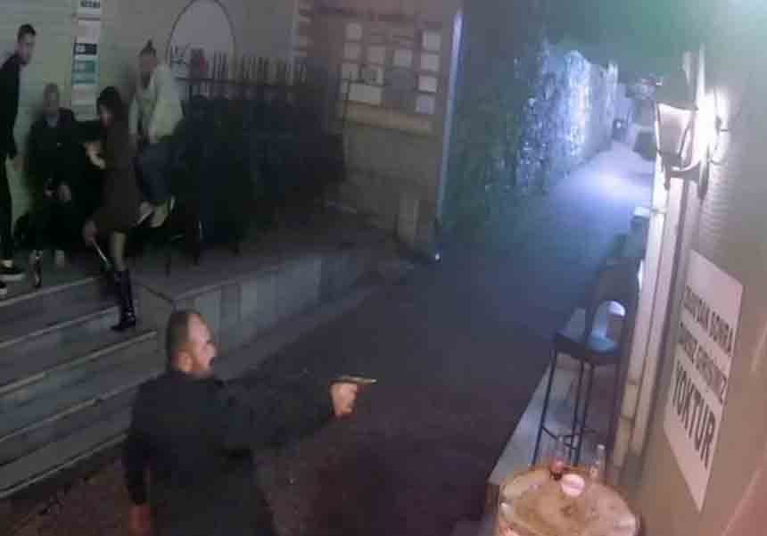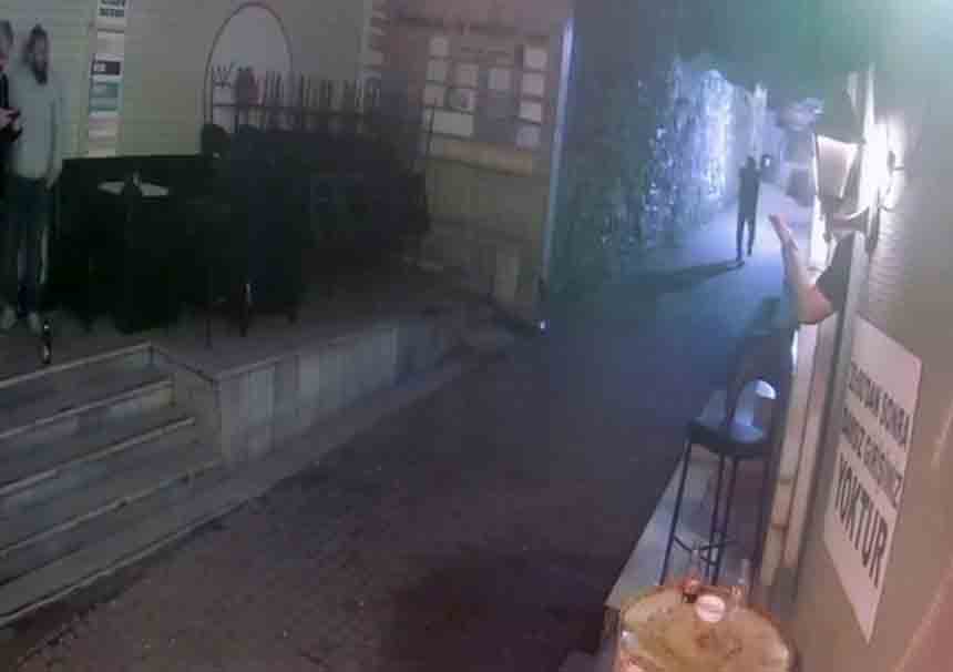 Öte yandan, saldırı anı iş yerinin güvenlik kameralarına yansıdı. Görüntülerde şüphelinin mekan önüne gelerek silahla ateş ettiği, ardından tekrar ateş etmek istediği sırada silahın tutukluk yaptığı ve olay yerinden kaçtığı görüldü.
