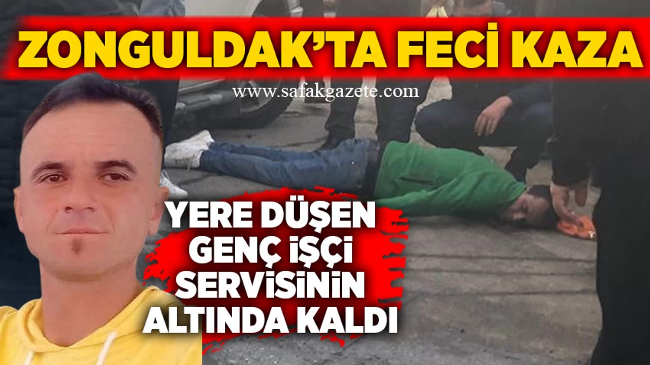 Alaplı ilçesinde yolun karşısına geçerken yere düşen bir kişi, işçi servisinin üzerinden geçmesi sonucu hayatını kaybetti.