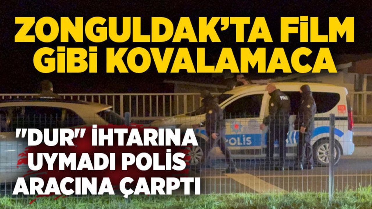 Zonguldak'ın Ereğli ilçesinde "dur" ihtarına uymayıp kaçan kovalamacada polis aracına çarpan araçtaki 3 kişi gözaltına alındı.