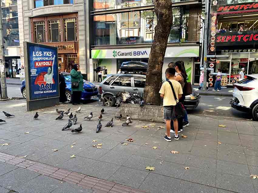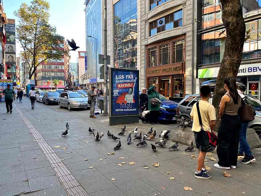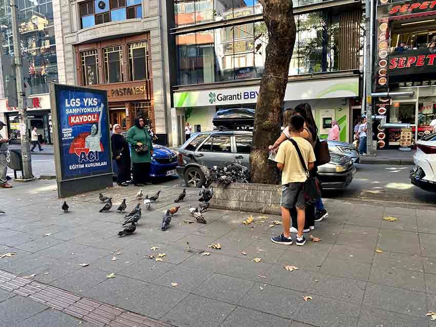 Gazipaşa Caddesi, bugün sakin ama anlamlı bir görüntüye sahne oldu. Bir aile, aldıkları yemlerle cadde üzerindeki güvercinleri besleyerek hem kendilerini hem de çevredekileri mutlu etti.