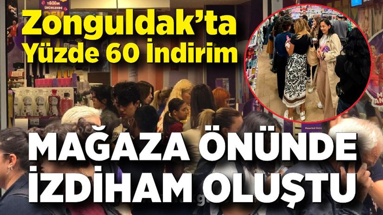 Zonguldak Gazipaşa Caddesi’nde faaliyet gösteren bir kişisel bakım ve kozmetik mağazasının yaptığı yüzde 60 indirim, vatandaşlardan yoğun ilgi gördü. 19 -20 Eylül'de gerçekleştirilecek indirimi duyan vatandaşlar sabahın erken saatlerinden itibaren mağazaya akın etti. Mağaza önünde uzun kuyruklar oluşurken, indirimli ürünler kısa sürede tükendi.