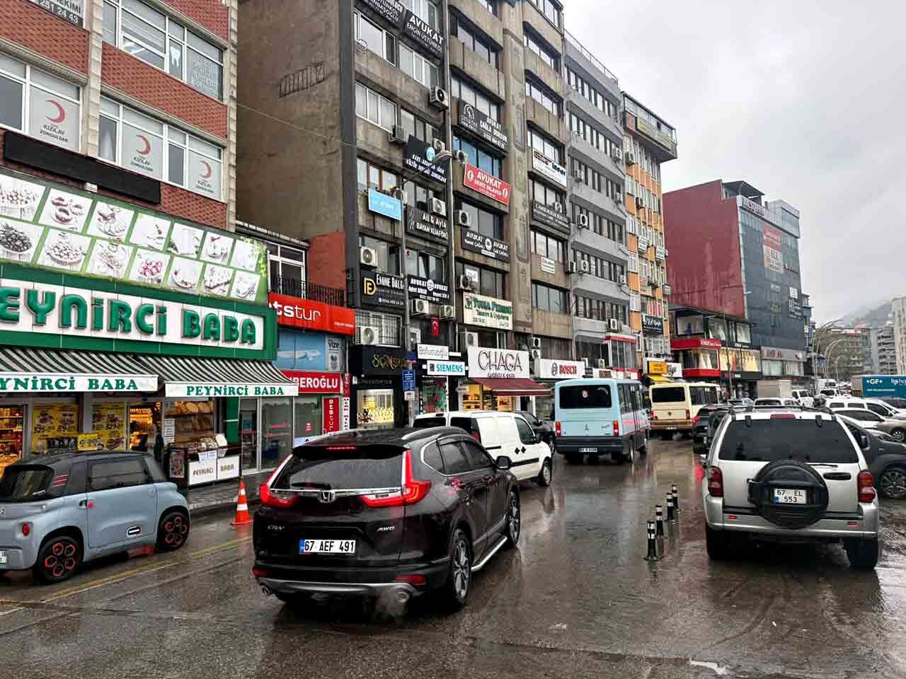 Zonguldak’ta etkisini sürdüren sağanak yağış, günlük yaşamı olumsuz etkiledi. Özellikle sabah saatlerinde işe ve okula gitmek isteyen vatandaşlar trafikte uzun süre beklemek zorunda kaldı.