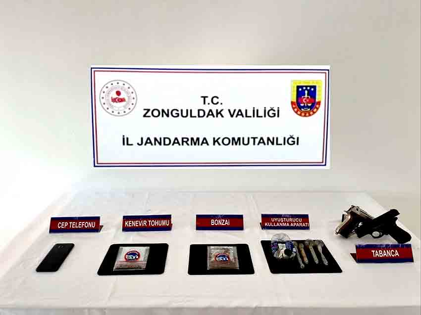 Yapılan aramalarda; 922 Gram Kubar Esrar, (208) Gram Toz Esrar, 82 Gram Kenevir Tohumu, 8 Gram Bonzai, 1 Adet Sentetik Ecza, (5) Adet Uyuşturucu Kullanma Aparatı, 2 Adet Kuru Sıkı Tabanca ele geçirilmiş ve 3 şüpheli şahıs yakalandı.
