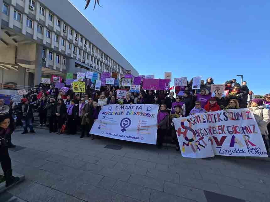 Zonguldak’ta 8 Mart Dünya Kadınlar Günü kapsamında kadınlar Madenci Anıtı’nda bir araya geldi. Zonguldak Kadın Platformu tarafından düzenlenen etkinlikte çok sayıda kadın eşitlik ve özgürlük taleplerini dile getirdi.