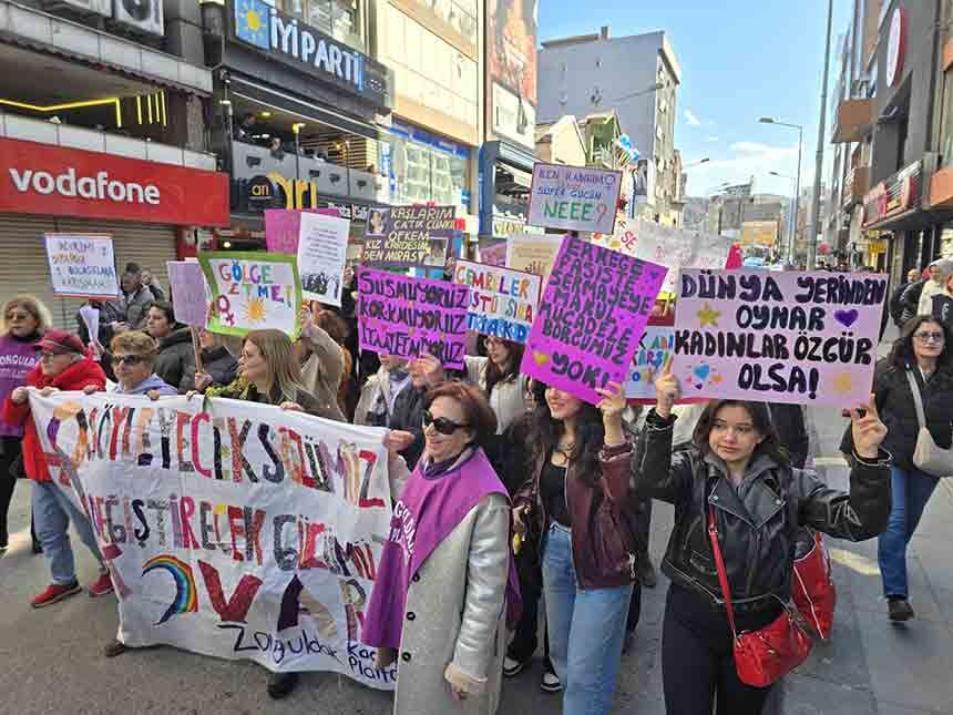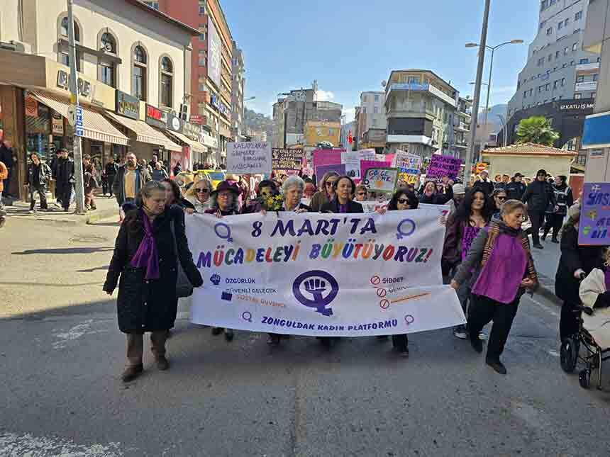 Basın açıklamasının ardından kadınlar sloganlar eşliğinde yürüyüş gerçekleştirdi. Madenci Anıtı’ndan başlayan yürüyüş Valilik binası önünde sona erdi. Kadınlar yürüyüş boyunca eşitlik, özgürlük ve dayanışma mesajları verdi.