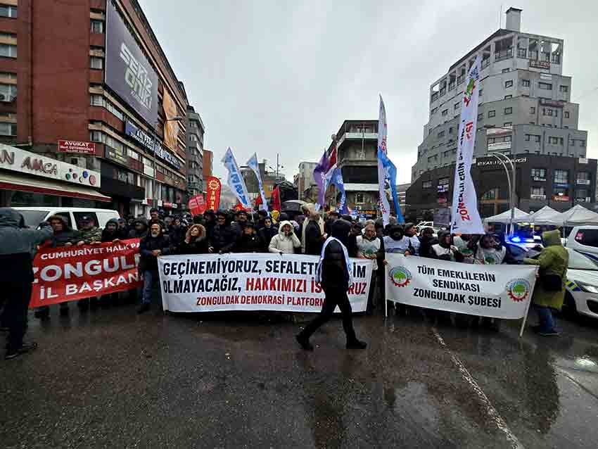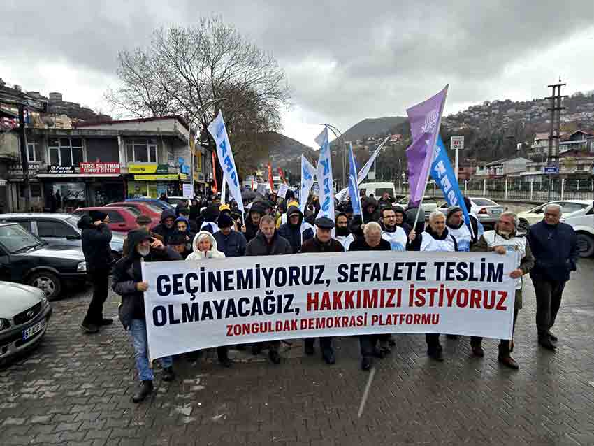 Zonguldak Demokrasi Platformu üyeleri, “Geçinemiyoruz, sefalete teslim olmayacağız, hakkımızı istiyoruz” sloganıyla yürüyüş ve basın açıklaması gerçekleştirdi.