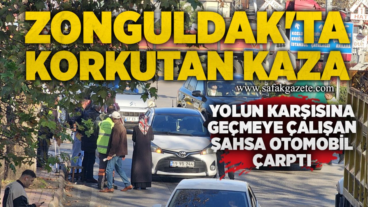 Zonguldak'ta yolun karşısına geçmeye çalışan şahsa otomobil çarptı. Şartların etkisiyle yere düşen şahıs yaralandı. Edinilen bilgiye göre kaza sabah saatlerinde Zonguldak Kent merkezinde meydana geldi. İddiaya göre 59 VG244 Plakalı araç sürücüsü yolun karşısına geçmeye çalışan C.K.'ye çarptı. Çarpmanın etkisiyle yere düşen şahıs başından darbe aldı. Kaza sonrası olay yerine 112 sağlık ve polis ekipleri sevk edildi. Olay yerine gelen sağlık ekipleri yaralıya ilk müdahaleyi yaptı. Yaralı ilk müdahalesinin ardından ambulansla hastaneye kaldırıldı. Tedavi altına alınan şahsın durumunun iyi olduğu öğrenildi.