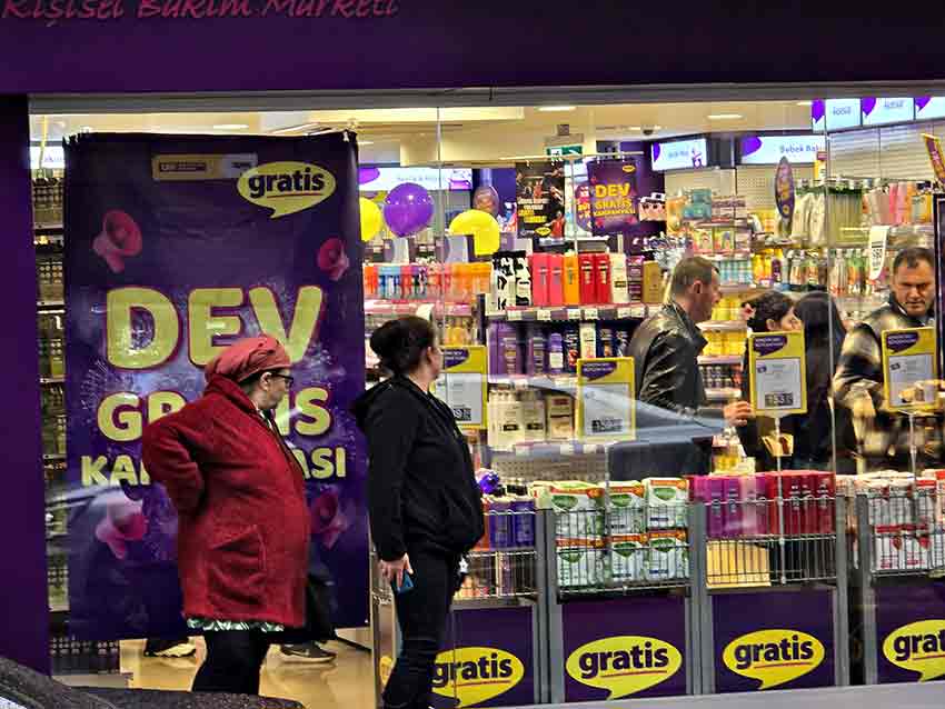 Zonguldak Gazipaşa Caddesi’nde faaliyet gösteren bir kişisel bakım ve kozmetik mağazasının 250 TL ve üzeri alışverişlerde tüm ürünlerde yüzde 60 indirim, vatandaşlardan ilgi gördü.