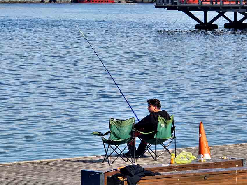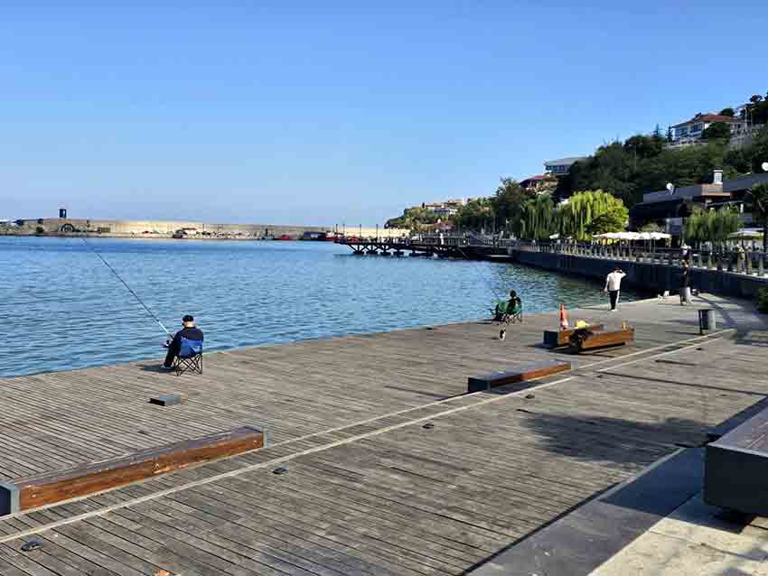 Zonguldak’ta amatör balıkçılar, oltalarını ve sandalyelerini alarak liman içine keyif yaptı.