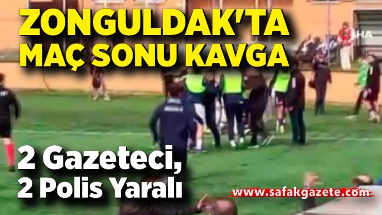 Zonguldak'ın Karadeniz Ereğli ilçesinde oynanan 3. lig maçının ardından çıkan kavgada 2 gazeteci darbedilirken, 2 polis memuru da yaralandı.