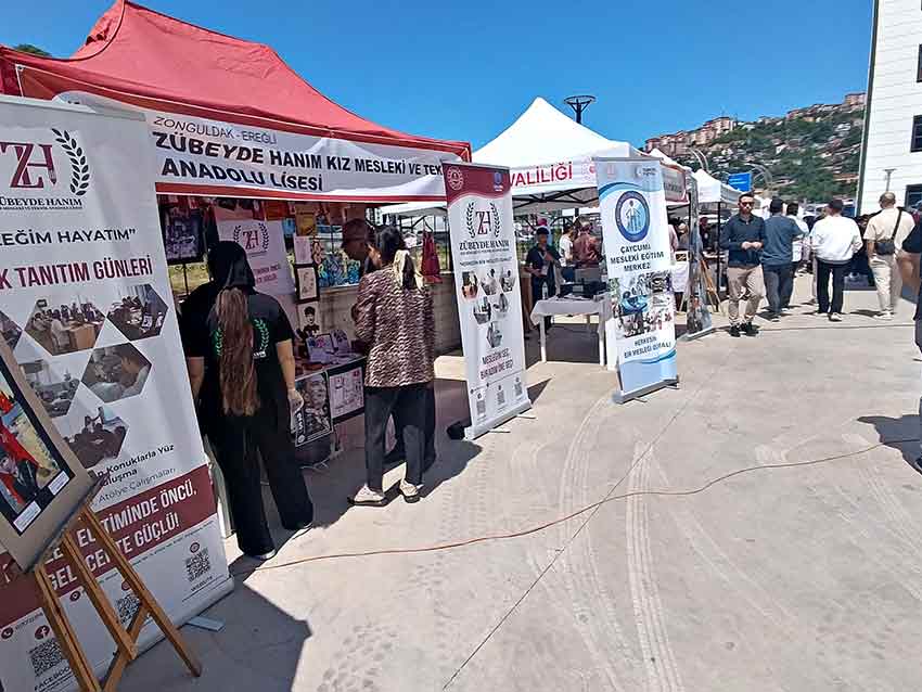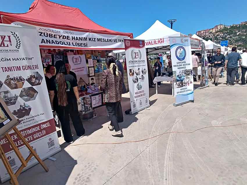 Zonguldak’ta Mesleki ve Teknik Eğitim Tanıtım Fuarı, İl Millî Eğitim Müdürlüğü hizmet binası avlusunda düzenlenen törenle açıldı. Fuara merkez ve ilçelerdeki 31 meslek lisesi katılarak tanıtım stantları kurdu ve öğrenciler yıl boyunca hazırladıkları projeleri sergiledi.