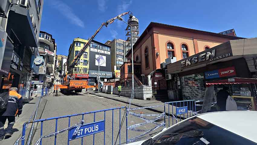 Zonguldak'ta 100 yıl önce yapılan ve dayanıksız olduğu gerekçesiyle geçtiğimiz hafta yıkımına başlanan Yeni Cami minaresi bugünde devam etti. Dayanıksız olduğu ve tehlike arz eden Yeni Cami minaresi geçtiğimiz hafta vinçle yıkıma başlandı. Yıkımı henüz tamamlanamayan minarede ekipler bugünde cami çevresini araç trafiğine ve yaya trafiğine kapatarak yıkım çalışması yaptı.