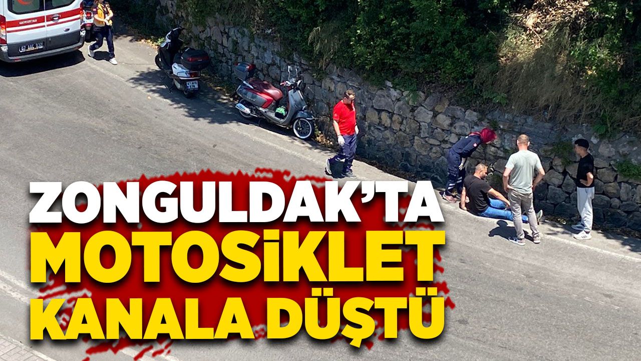 Zonguldak’ta Kadırga Rampası mevkisinde meydana gelen kazada, sürücüsünün direksiyon hakimiyetini kaybettiği motosiklet yol kenarındaki kanala düştü.