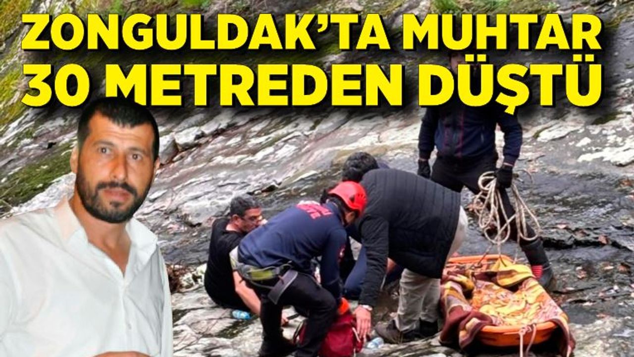 Zonguldak'ın Karadeniz Ereğli ilçesine bağlı Pınarcık köyü muhtarı, yaklaşık 30 metre yükseklikten düşerek yaralandı.