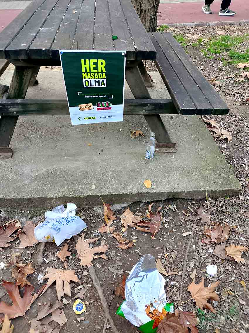 Sabah parkı temizlerken durumu gören İncivez Mahallesi Muhtarı Hüseyin Cevher, yaşanan manzaraya tepki gösterdi. Cevher, “Ahlak 5 harften ibaret değildir” diyerek hem durumu eleştirdi hem de farkındalık yaratmak amacıyla park masalarına Yeşilay Destek Hattı afişleri astı.
