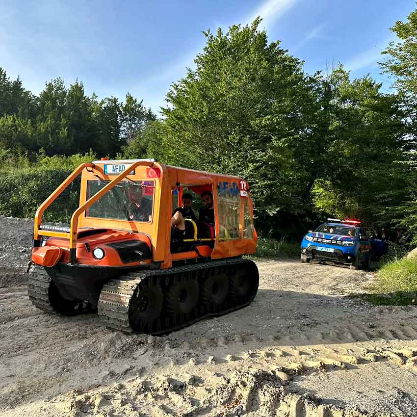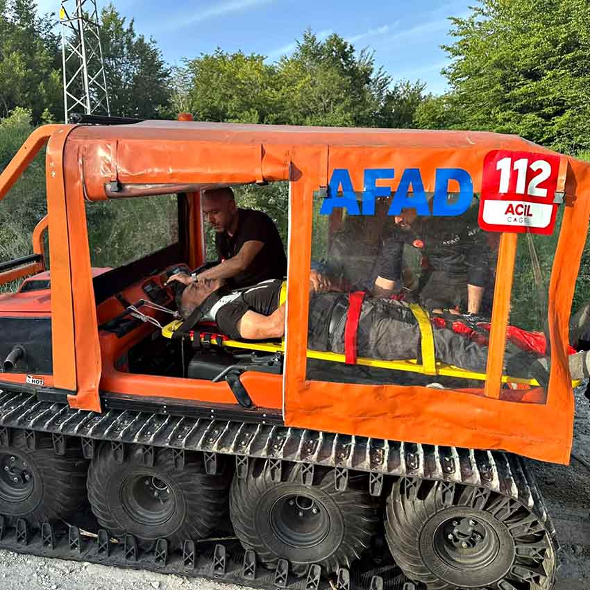 AFAD’ın 8x8 amfi argo kurtarma aracı ile kurtarılan orman işçisi, AFAD ekiplerinin çalışması sonucu olay yerine gelen sağlık ekiplerine teslim edildi.