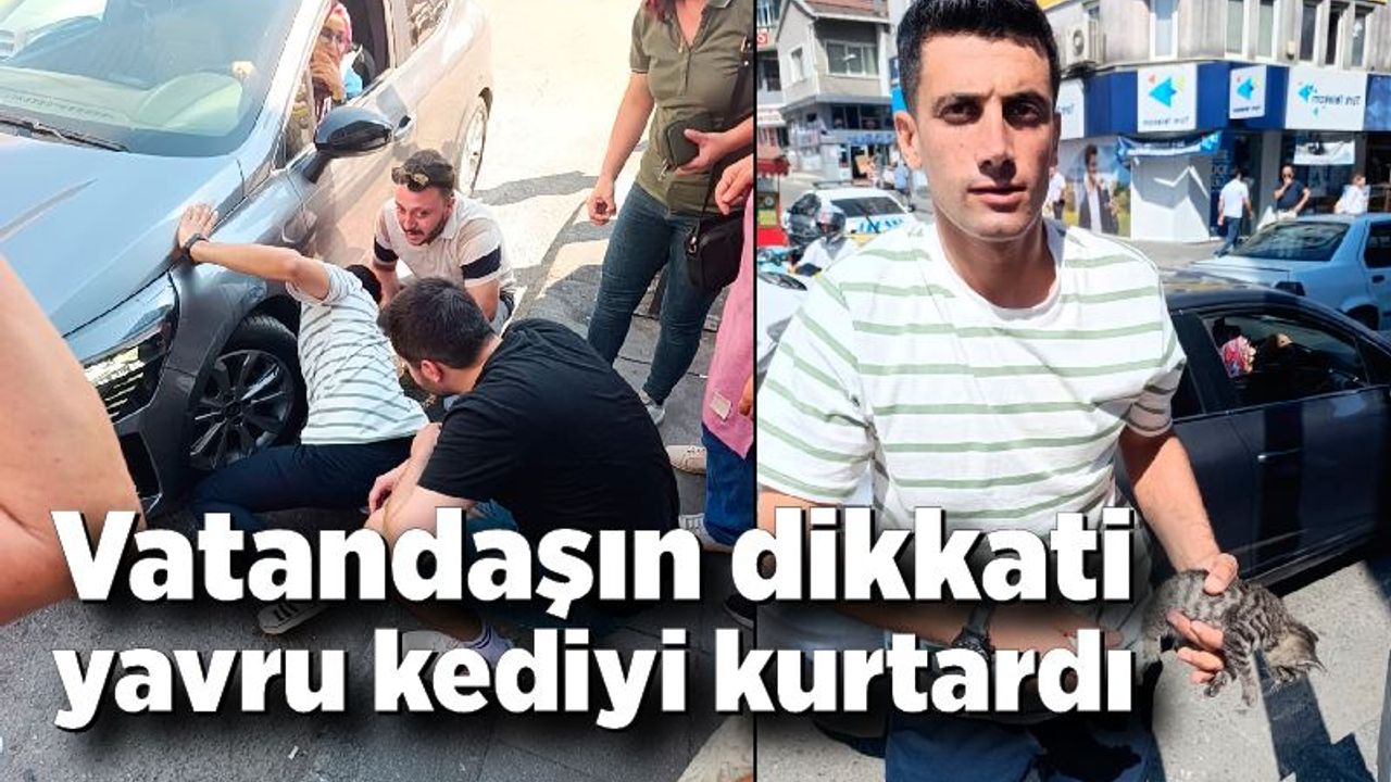 Zonguldak'ta aracın lastiğin sıkışan kedi vatandaşlar tarafından kurtarıldı. Trafikte seyir halindeki kadın sürücünün kullandığı aracın altında yavru kedi girdi. Durumu fark eden çevredeki vatandaşlar sürücüyü uyararak aracı durdurdu. Hızlı bir müdahalenin ardından yavru kedi sıkıştığı yerden çıkarıldı.Kısa süreli panik ve heyecana neden olan olayda, kedinin son anda kurtarılması hem sürücüyü hem de çevredeki vatandaşları sevindirdi.