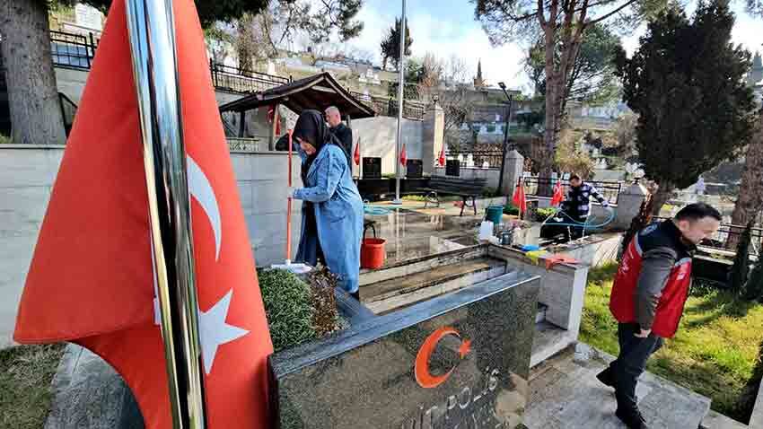 Aile ve Sosyal Hizmetler Bakanlığı’nın talimatıyla Zonguldak merkez ve ilçelerinde bulunan şehit mezarlarında bakım, onarım ve temizlik çalışması gerçekleştirildi. İl genelinde yürütülen çalışmalar kapsamında şehitliklerdeki mezarlar tek tek yıkanarak temizlendi.