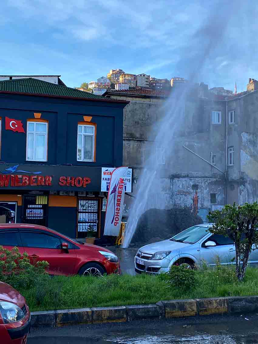 Su borusunun oluşturduğu arıza nedeniyle yol tamamen sular altında kalırken, sürücüler ve yayalar zor anlar yaşadı. Tazyikli su öyle bir güçle fışkırdı ki, bazı binaların üstlerine kadar ulaştı.