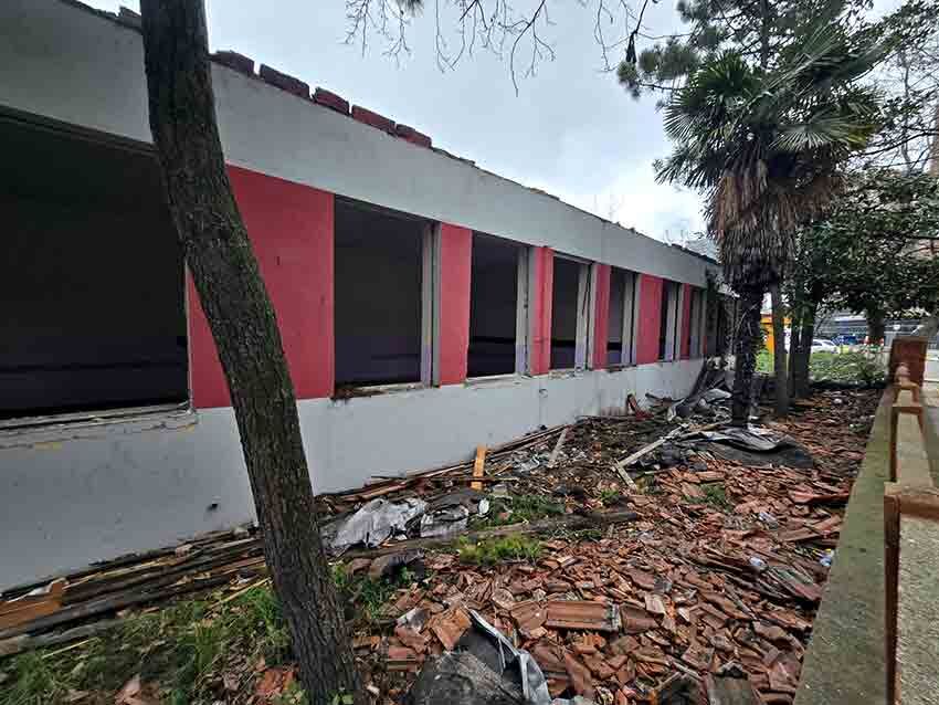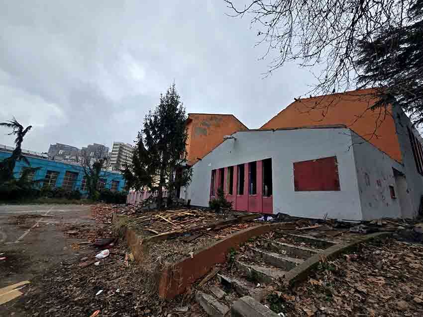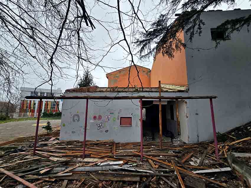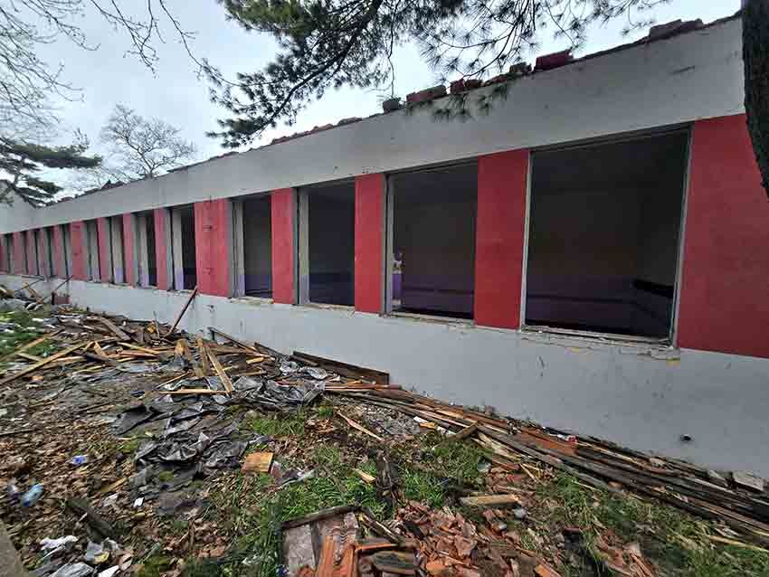 Yıkım çalışmaları kapsamında okulun kapıları, camları ve çatısı söküldü. Şu anda sadece iskeleti kalan bina, harabe görüntüsüyle dikkat çekiyor.