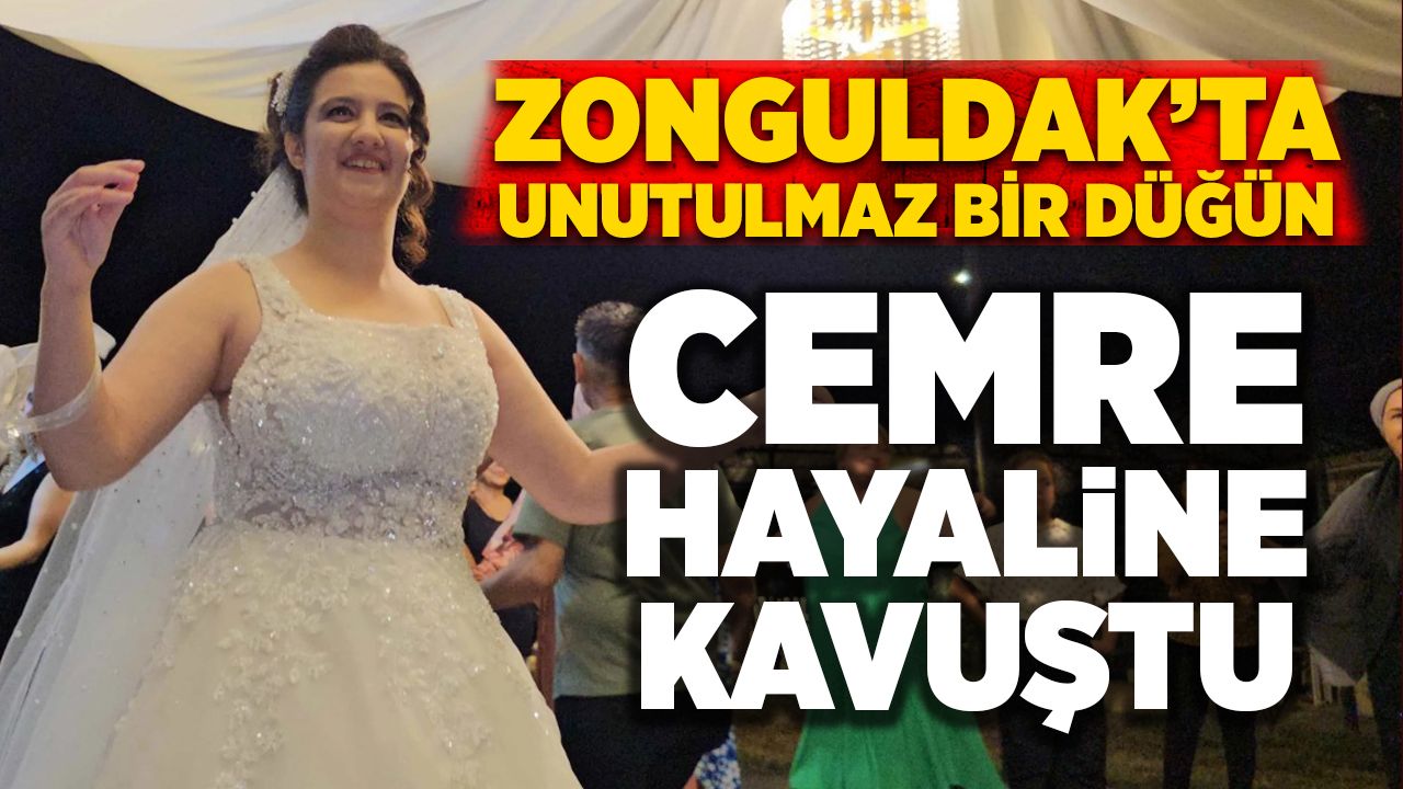 Zonguldak’ta yaşayan 50 yaşındaki Canan Kayaşimşir, gelinlik giyme hayali kuran 25 yaşındaki özel gereksinimli kızı Cemre Çınar için temsili bir düğün organize etti. Gelin arabasından pastaya kadar her detayın düşünüldüğü organizasyonda Cemre, hayallerine kavuşmanın mutluluğunu yaşadı.