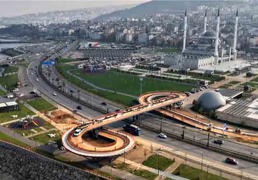 “Fotoğraftaki üst geçit bir örnektir. Trabzon'da Pazarkapı ile Ganita arası irtibatını sağlayan bir üst geçit olarak yapılmış ve yakın zamanda servise konmuştur. Merdiven yok, asansör yok, yürüyen merdiven yok. Yaya yolu var, bisiklet yolu var, yeşil alanı var. Emniyetli ve şehir merkezine uygun estetik görünümlü. Zonguldak şehri ve halkı için böyle bir üst geçit niye düşünülmez! Kalbi selamlar”