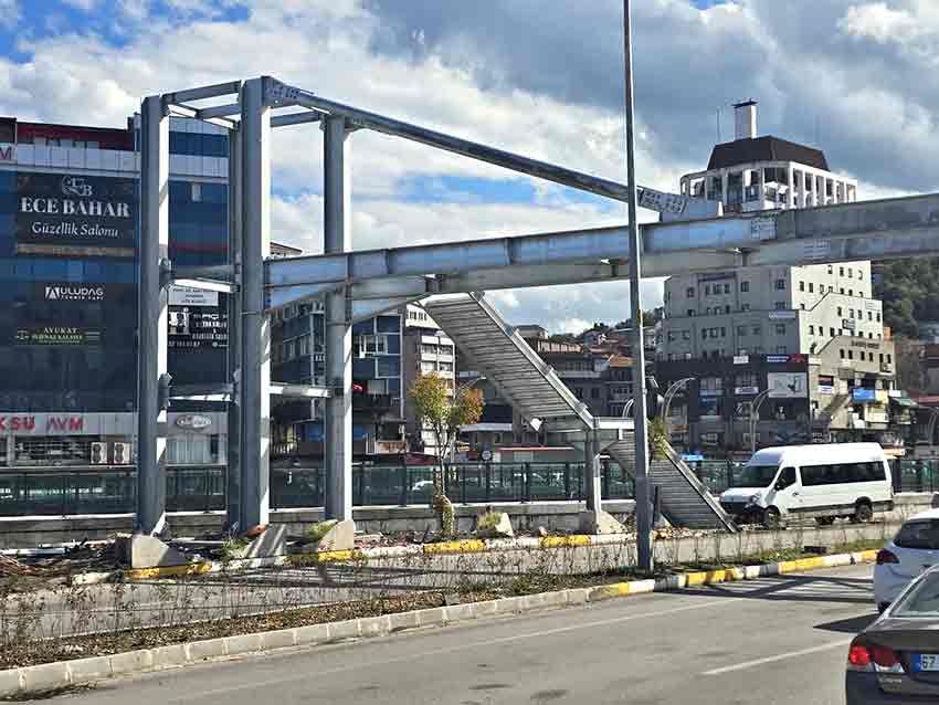 Zonguldak’ta trafiğin rahatlatılması ve vatandaşların güvenli geçiş sağlaması amacıyla yapımı süren asansörlü üst geçidin montajında sona gelindi. Köprünün geçiş kısmı tamamlanırken merdivenlerin montajı da gerçekleştirildi.