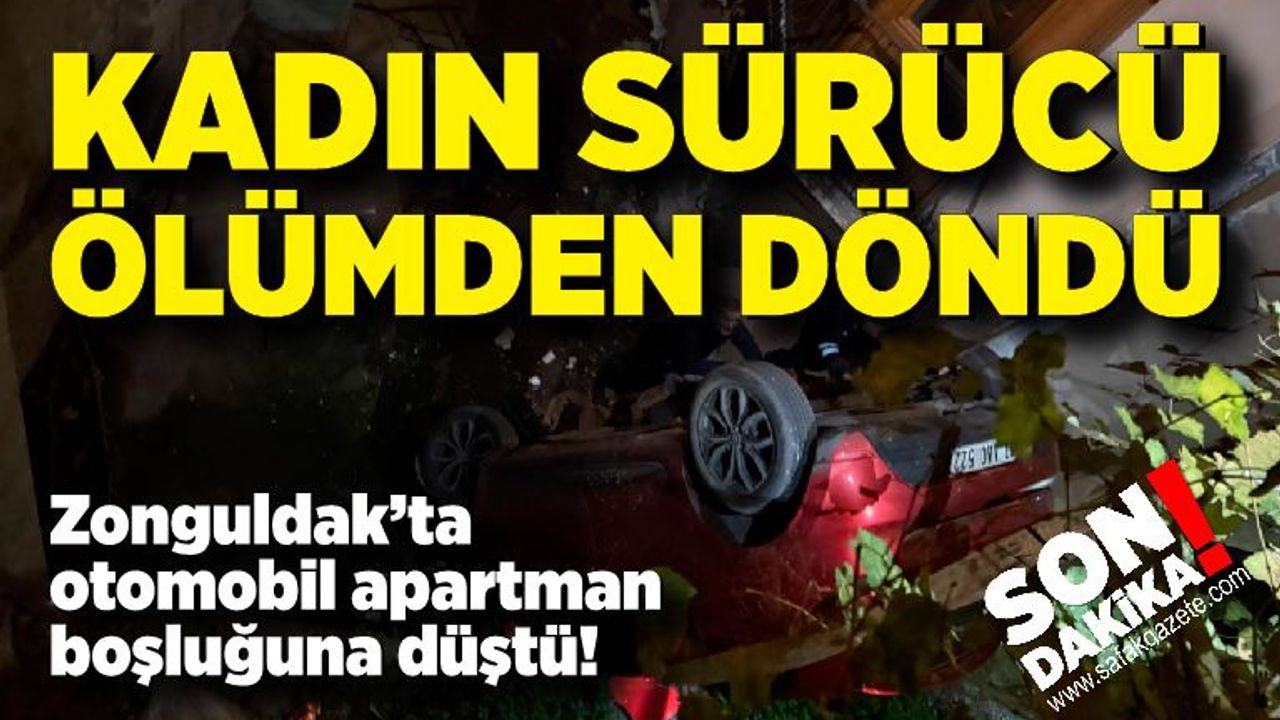 Zonguldak Bahçelievler Mahallesi'nde direksiyon hakimiyetini kaybeden kadın sürücü apartman boşluğuna düştü. Meydana gelen kazada kadın sürücü yaralandı.