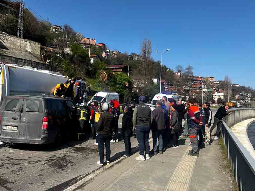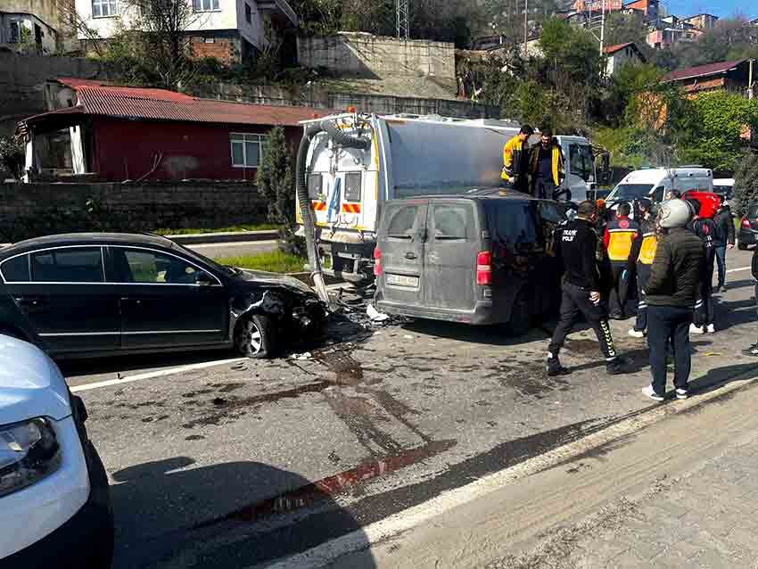 İddiaya göre, seyir halinde ilerleyen Zonguldak Belediyesi’ne ait 67 ABV 428 plakalı temizlik aracına, aynı istikamette ilerleyen 78 AHH 046 plakalı araç ile 78 SK 163 plakalı otomobil arkadan çarptı. Çarpmanın etkisiyle araçlarda bulunan 4 kişi yaralandı.