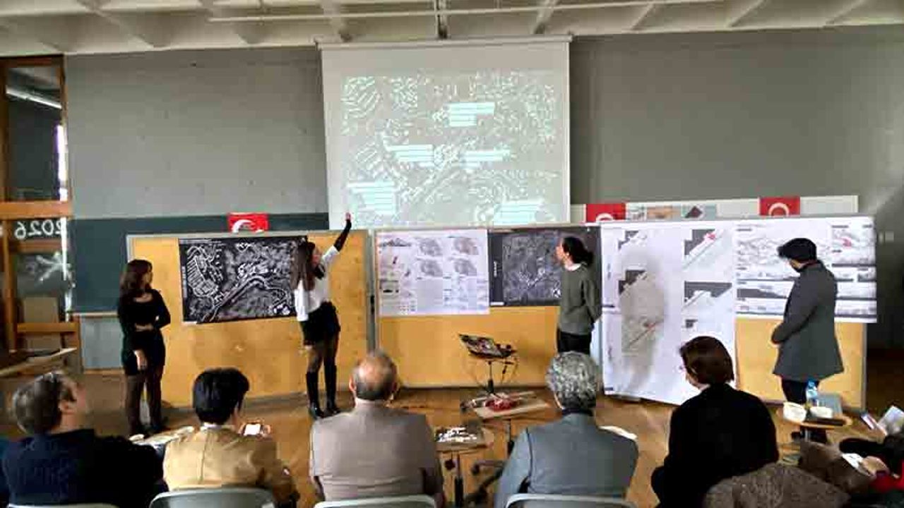 2025–2026 Akademik Yılı Güz Dönemi kapsamında yürütülen “ARCH 401 Mimari Tasarım V” stüdyo dersi çerçevesinde, Prof. Dr. F. Cânâ Bilsel ve Prof. Dr. Özlem Karakul Türk yürütücülüğünde hazırlanan “A Future for An Old Coal Mining Cluster: Üzülmez Valley in Zonguldak” başlıklı projelerin final sunumları yapıldı. Öğrenciler, Üzülmez Vadisi’nin geleceğine yönelik yeniden işlevlendirme, mimari program ve mekânsal tasarım önerilerini jüri üyelerine sundu.